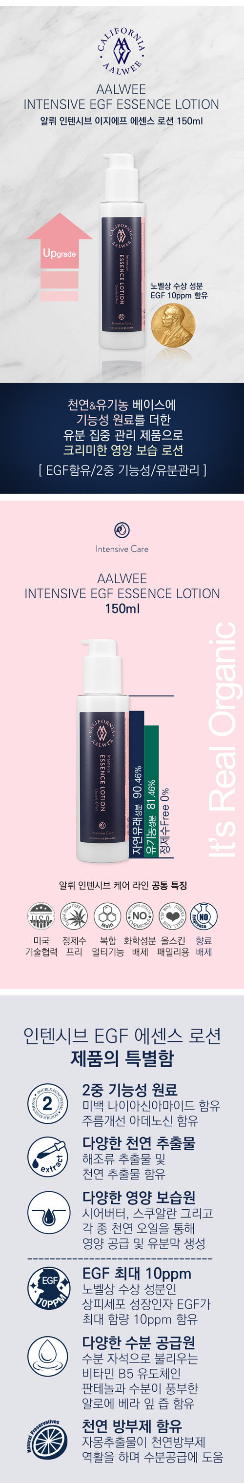 인텐시브 케어라인은 피부 재생에 뛰어난 노벨상 수상 성분 상피세포성장인자 EGF의 최대 허용량 0.001% 첨가, 피부 턴오버를 촉진하여 피부 회복에 도움을 줍니다.