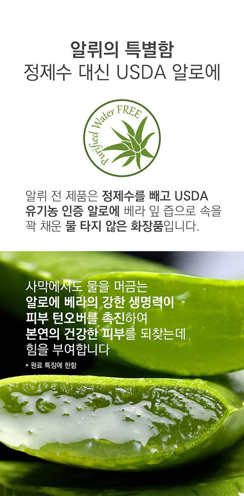 ⭐️거의 모든 화장품에 들어간다는 정제수! 과감히 빼고 알로에 베라 잎 즙을 넣었으니 정말 피부속까지 생각한 화장품 브랜드에요.