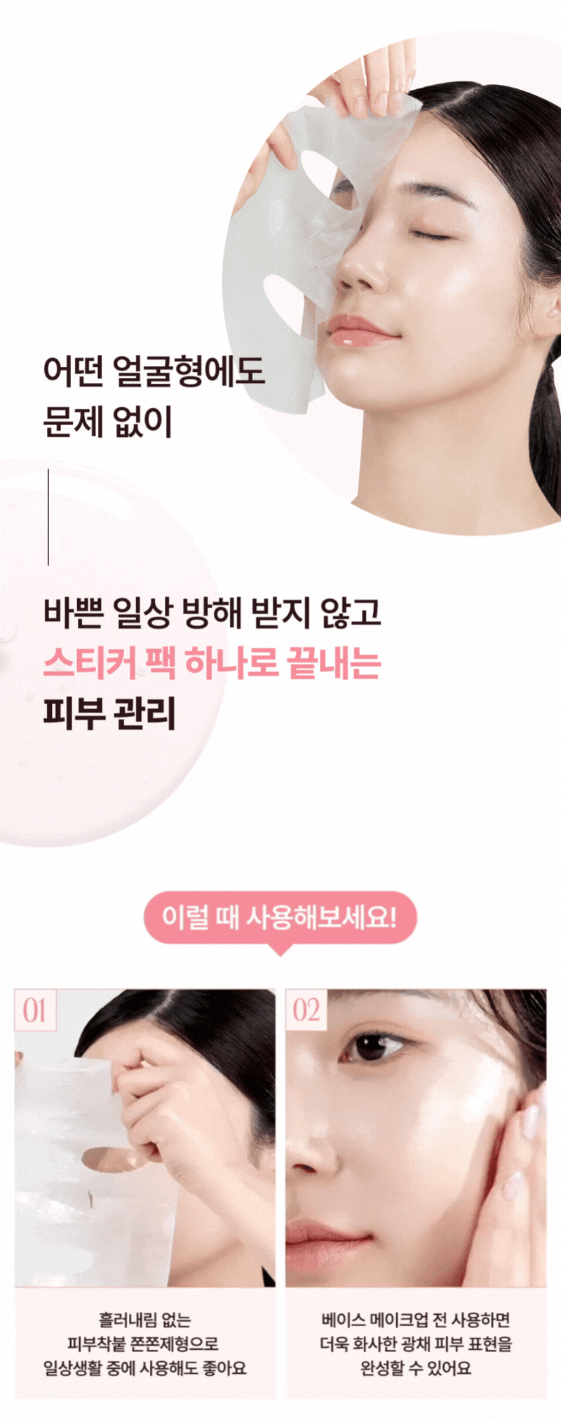 스티커처럼 착! 초 밀착 💎영양케어와 동시에 겉부터 속까지 층층히 꽉 채워진 보습감을 주는 마스크팩!