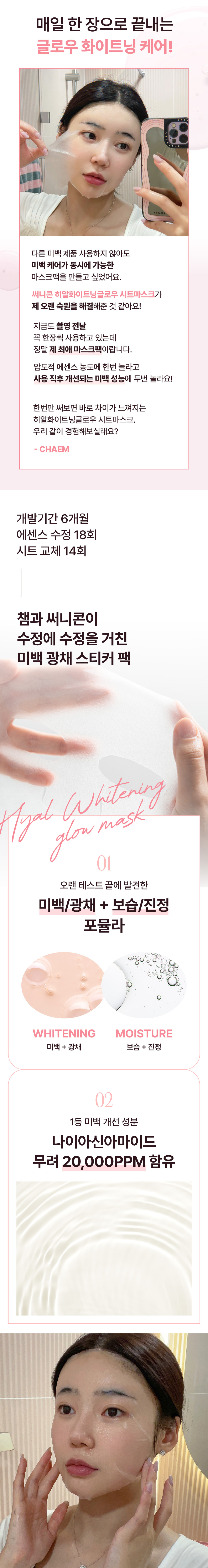 글로우 시트마스크답게 압도적 에센스 농도와 사용 직후 개선되는 미백 성능에 제가 반했답니다!