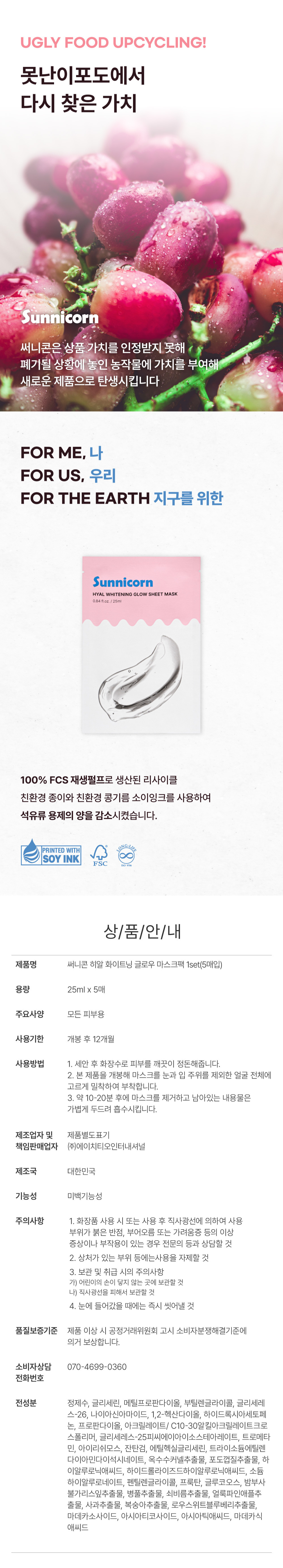 ✨써니콘 히알 화이트닝 글로우 시트마스크✨