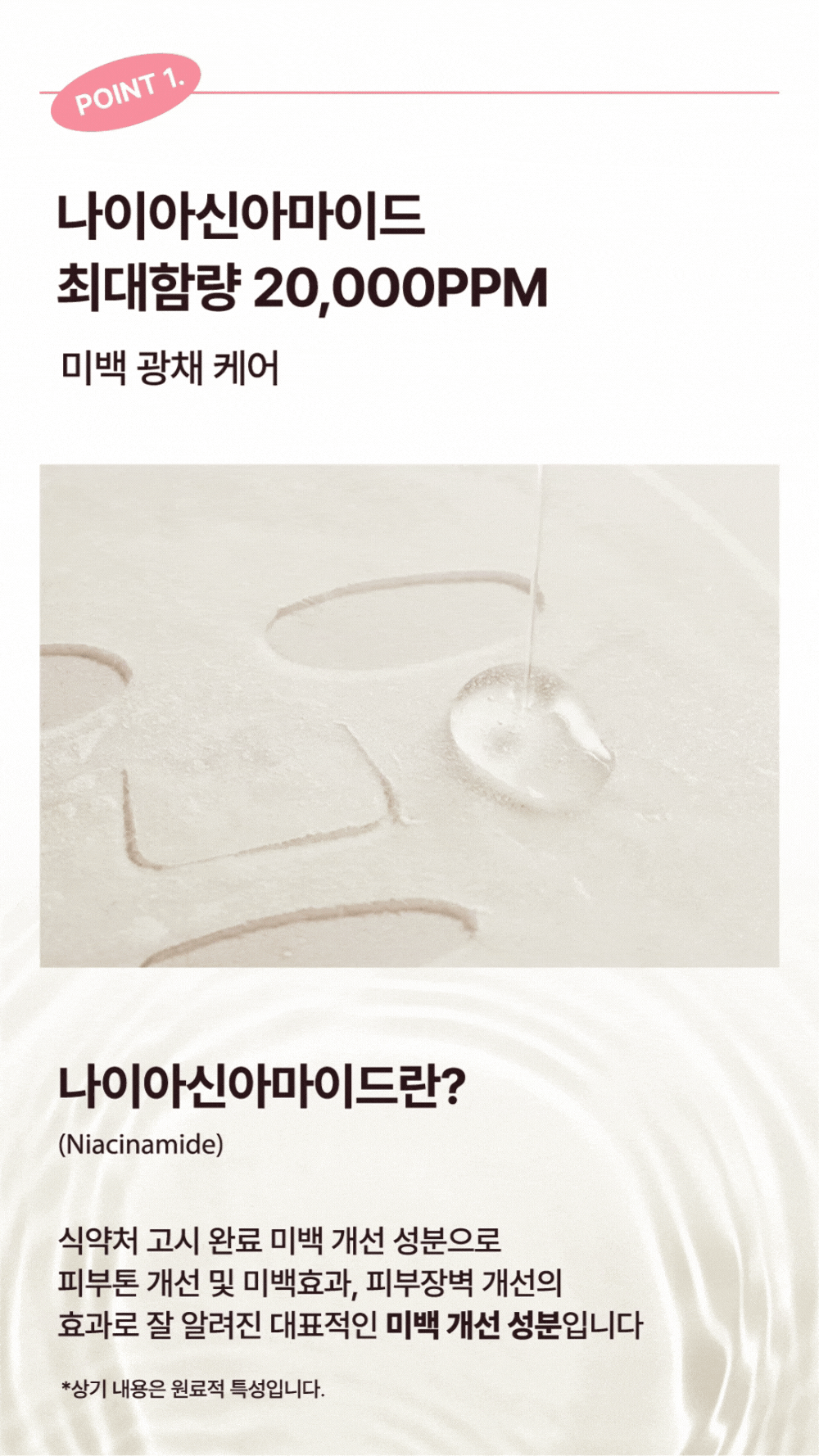 1등 미백 개선 성분인 나이아신아마이드가 무려 ‼️20.000ppm 함유!