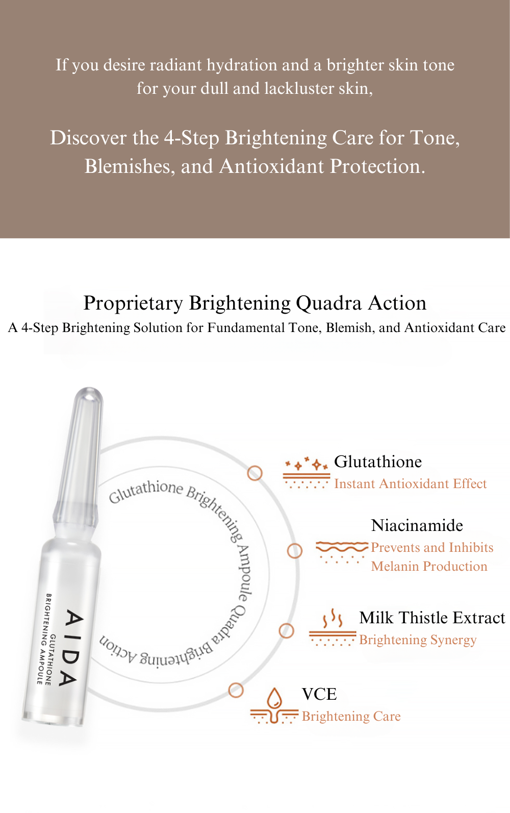Glutathione has recently gained attention for its skin-brightening properties, helping to create a radiant, even complexion. Aida Cosmetic uses high-purity glutathione to formulate its products.