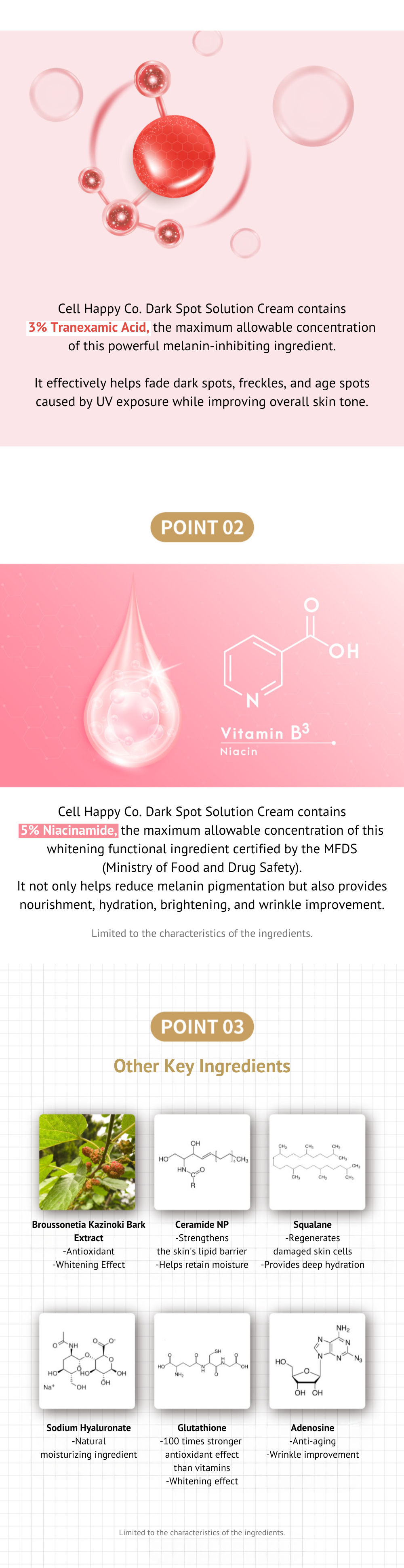 3️⃣ Packed with brightening, antioxidant, skin regeneration & hydration ingredients