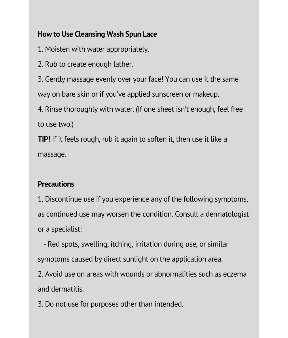 With just one Spunlace, you can manage both exfoliation and pore cleansing, leaving your skin smooth and free from tightness, allowing your makeup to go on flawlessly!