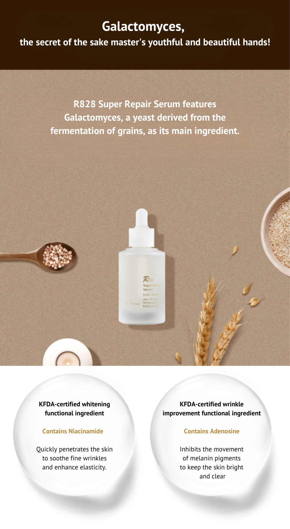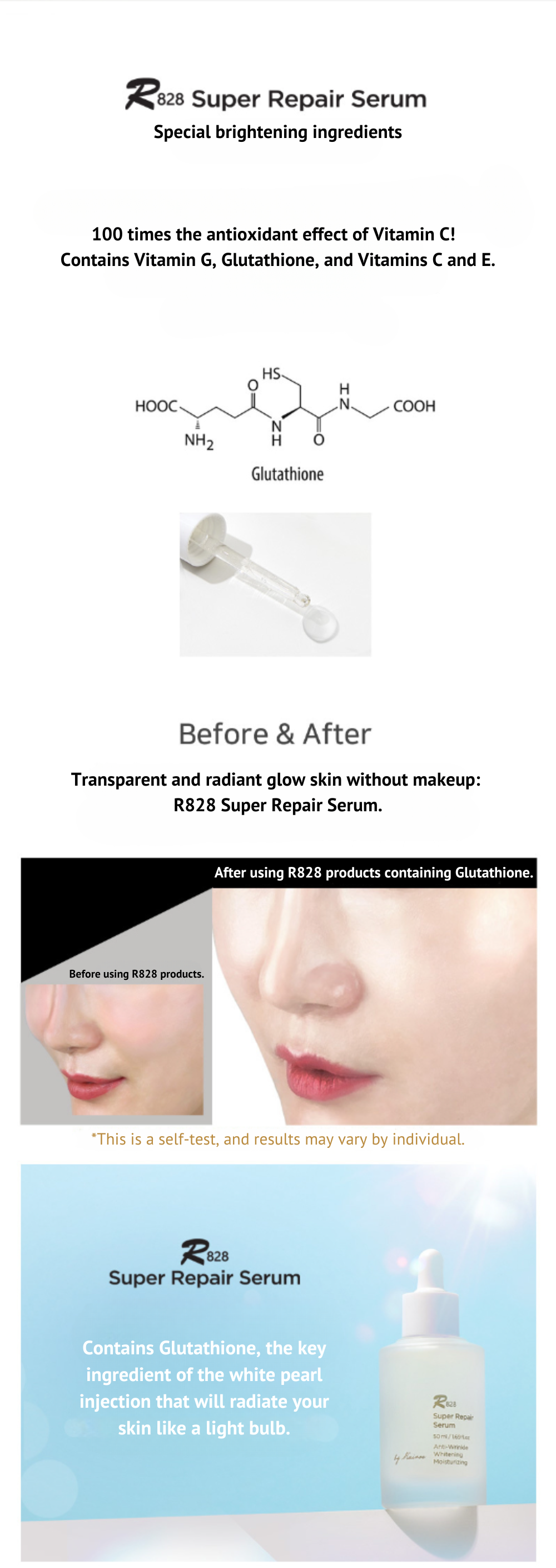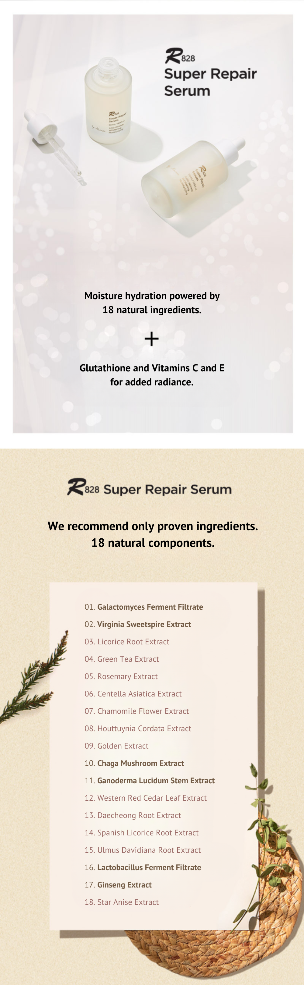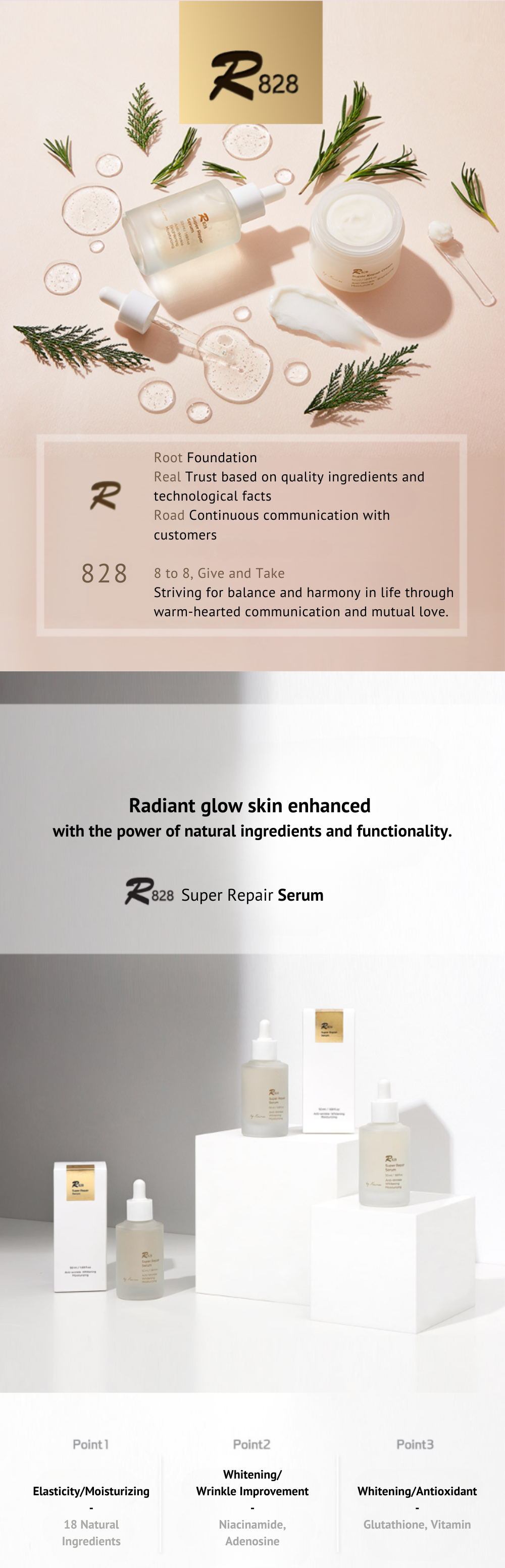 R828 is a brand that emphasizes quality ingredients and communication with customers, rooted in the philosophy of "Root Real Road." The R828 Super Repair Serum harnesses the power of Galactomyces yeast extract as its main ingredient, focusing on both anti-aging and brightening benefits.