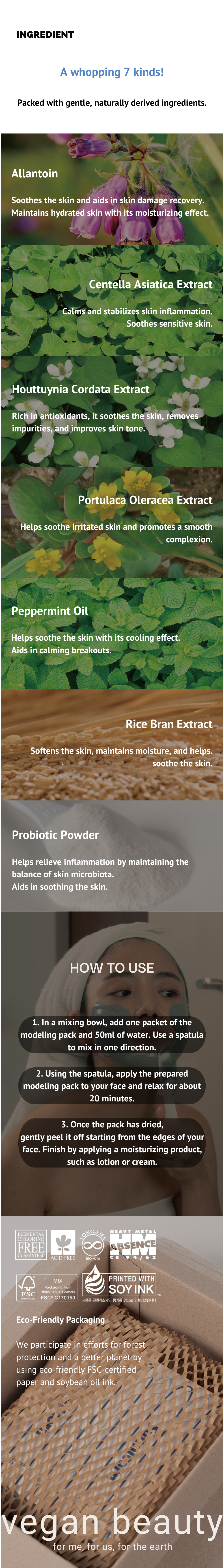 As the first modeling pack with 50 billion probiotics in Korea, it penetrates deep into the pores, removing impurities and harmful bacteria, leaving your skin clear and healthy.